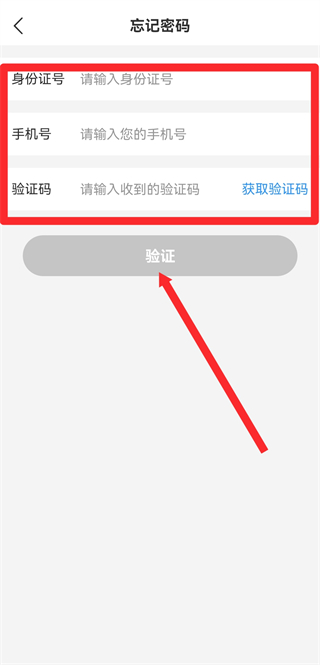 3、在忘記密碼頁面,輸入信息后,點擊驗證,完成密碼找回操作。
