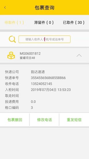2、滯留件、待取件、已取件信息都能掌上查詢,了解包裹信息。