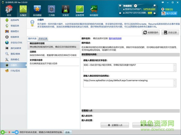 5.新增在線支付激活插件,可以云控方式設置應用的激活套餐,并可以直接在線支付后實現(xiàn)包月或者永久vip的功能