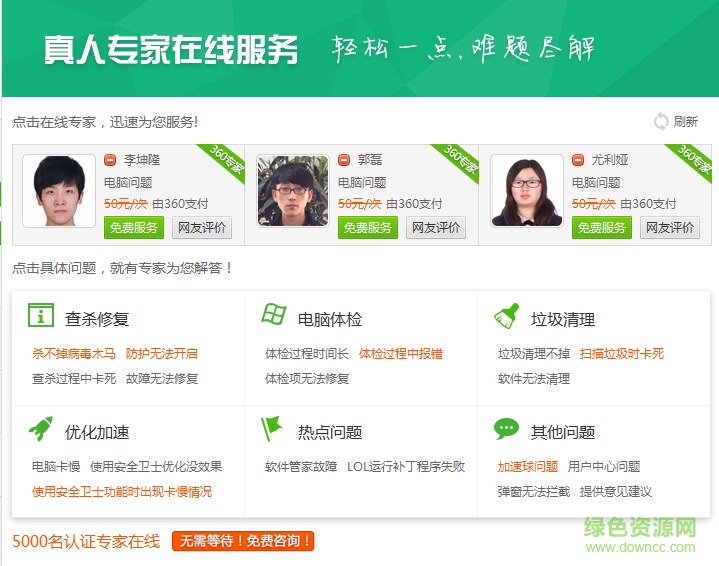 360電腦醫(yī)生是360安全衛(wèi)士推出的一箱人工檢測輔助,為你提供實時在線的電腦系統(tǒng)檢測,同時提供同城修理醫(yī)生上門服務(wù),歡迎大家在綠色資源網(wǎng)下載!