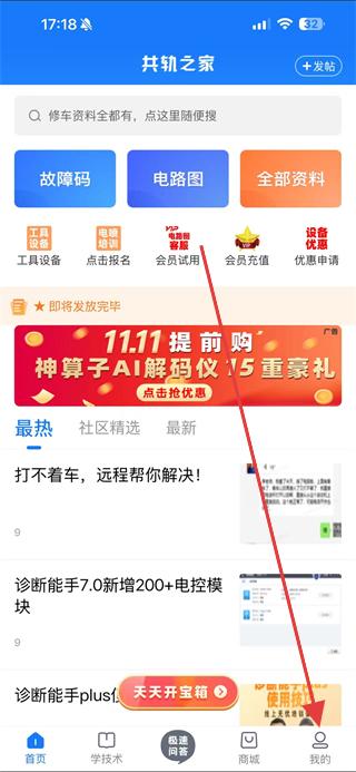 1、打開共軌之家App,點(diǎn)擊底部導(dǎo)航欄最右側(cè)的我的,進(jìn)入個(gè)人頁面。