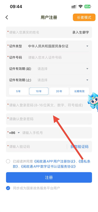 4、在頁(yè)面依次填寫(xiě)個(gè)人信息,勾選同意相關(guān)協(xié)議后,點(diǎn)擊注冊(cè)按鈕,即可完成賬號(hào)注冊(cè)。