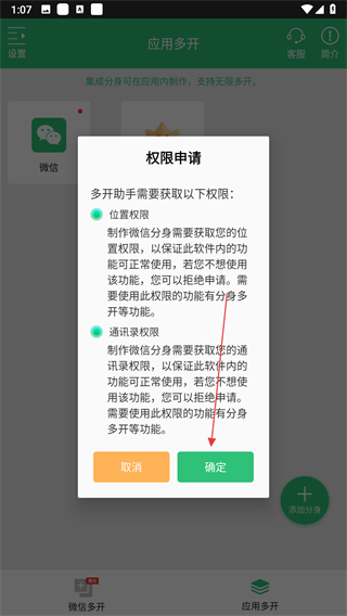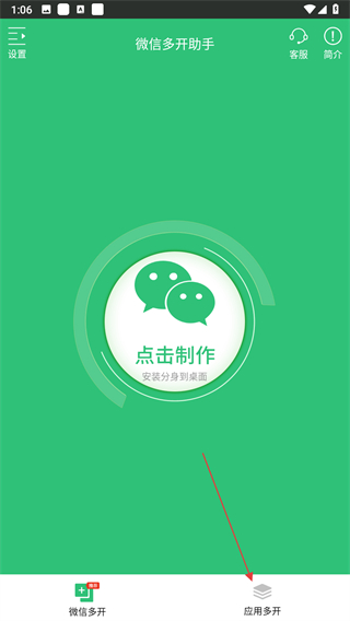 1、打開微信多開助手應用,點擊底部導航欄中的應用多開選項。