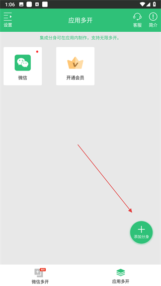2、在應用多開界面,點擊右下角的添加分身綠色按鈕。