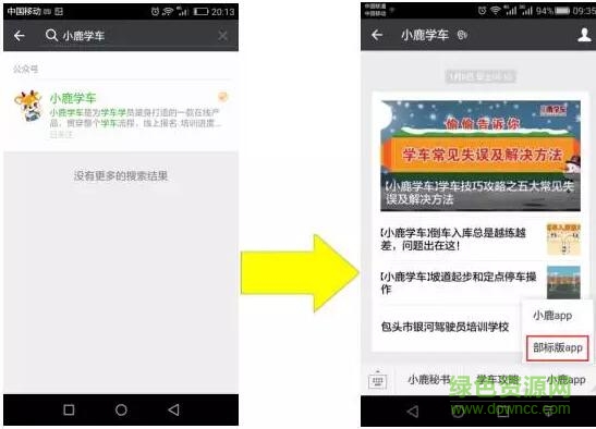 學(xué)員通過在微信公眾里號里搜索“小鹿學(xué)車”公眾號并點擊關(guān)注,進入小鹿學(xué)車微信公眾號后,點擊右下角的小鹿APP,下載并安裝部標版app。