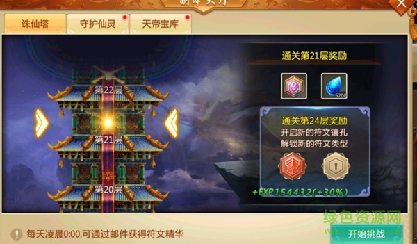誅仙塔是《青云訣》單人副本中的一種特色玩法,類似于其他游戲中的爬塔玩法,通關(guān)指定層數(shù)可以解鎖新符文類型和符文孔位,每天0:00系統(tǒng)會(huì)根據(jù)你的通關(guān)層數(shù)通過郵件發(fā)放一定數(shù)量的符文精華(用于提升符文等級(jí))。
