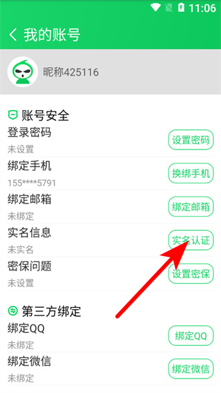 3、在我的賬號(hào)界面,點(diǎn)擊實(shí)名認(rèn)證選項(xiàng),進(jìn)入實(shí)名認(rèn)證頁面。