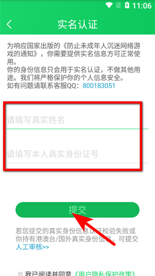 4、在實(shí)名認(rèn)證頁面,輸入真實(shí)姓名和身份證號(hào)后點(diǎn)擊提交按鈕,即可完成實(shí)名認(rèn)證操作。