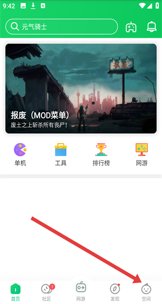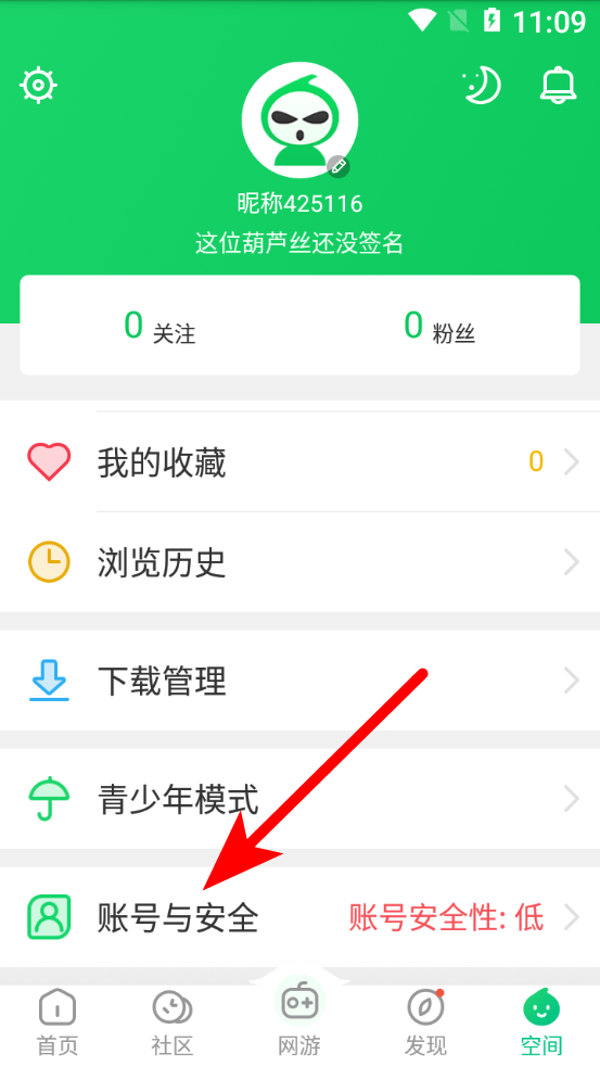 1、在葫蘆俠首頁,點(diǎn)擊右下角空間選項(xiàng),進(jìn)入個(gè)人空間頁面。