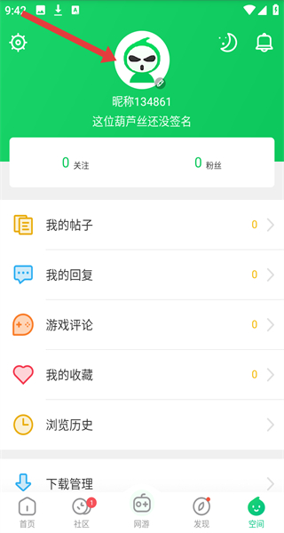 2、在我的空間頁面中,可以點(diǎn)擊上方頭像,進(jìn)入查看我的個(gè)人信息。