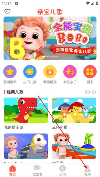 1、打開親寶兒歌,點(diǎn)擊底部導(dǎo)航欄最右側(cè)我的。