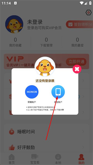 2、在我的頁面中,找到并點(diǎn)擊上方的未登錄區(qū)域。