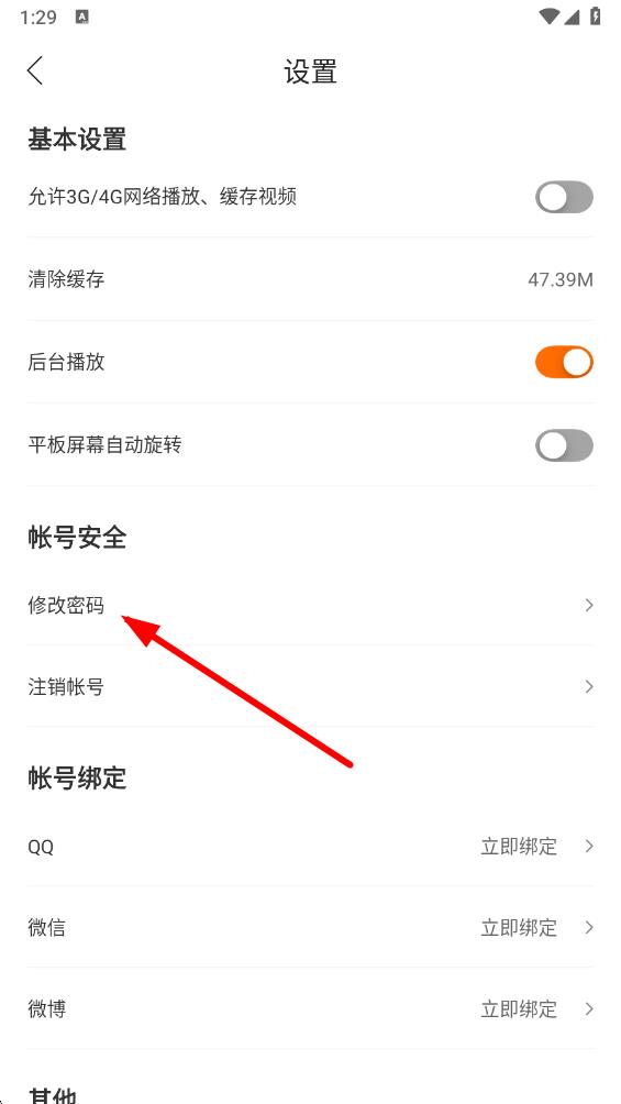 3、在設(shè)置頁面里,點(diǎn)擊帳號安全板塊下的修改密碼選項(xiàng)。