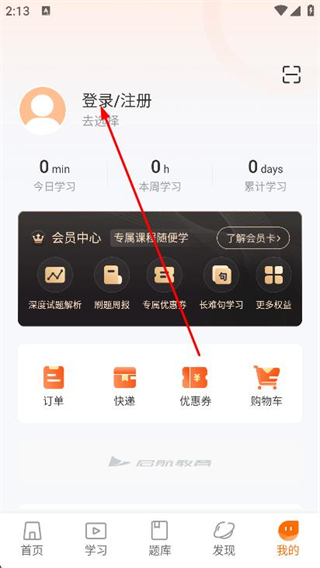 2、在我的頁面中,點(diǎn)擊上方登錄/注冊選項(xiàng)。