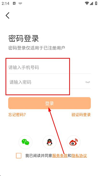 4、輸入手機(jī)號碼和密碼,點(diǎn)擊登錄即可登錄賬號。