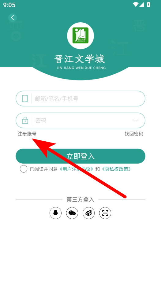 3、在賬號(hào)登入頁(yè)面,點(diǎn)擊注冊(cè)賬號(hào)選項(xiàng),進(jìn)入注冊(cè)界面。