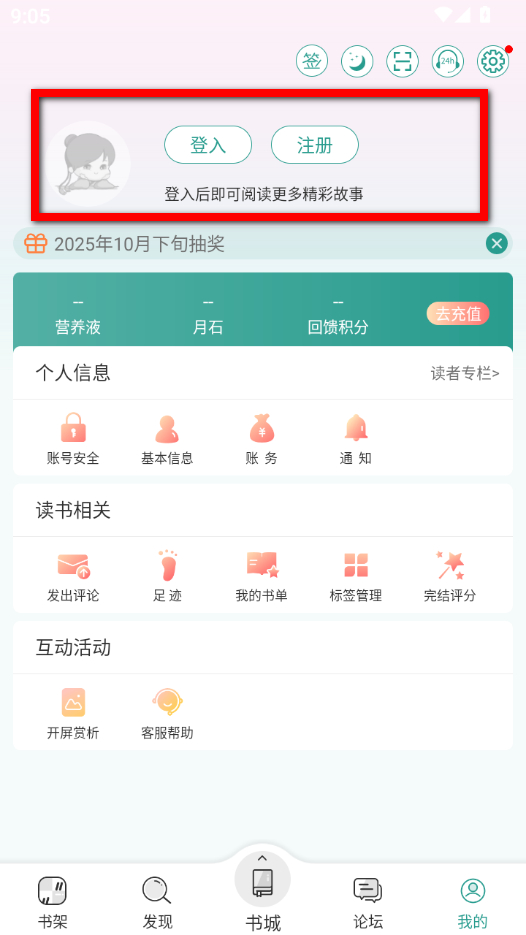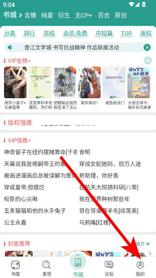 1、在晉江小說(shuō)閱讀書(shū)城頁(yè)面,點(diǎn)擊右下角我的選項(xiàng),進(jìn)入個(gè)人中心界面。