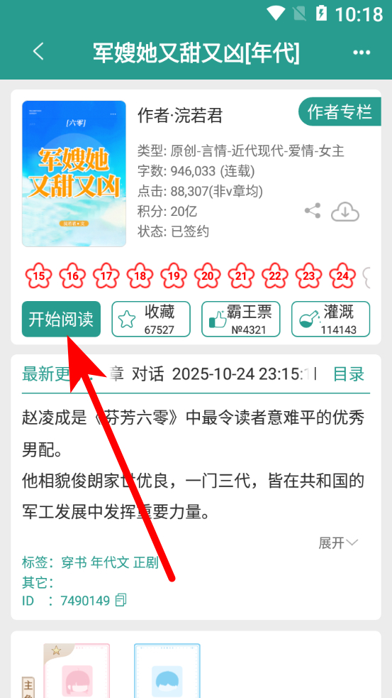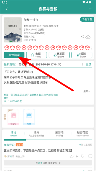 2、在小說(shuō)詳情界面,點(diǎn)擊開(kāi)始閱讀按鈕,進(jìn)入小說(shuō)閱讀頁(yè)面。