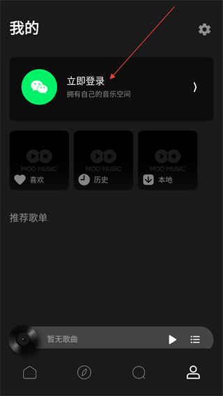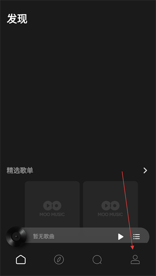 1、啟動MOO音樂的應(yīng)用,進(jìn)入時(shí)點(diǎn)擊右下角人像的圖標(biāo)。