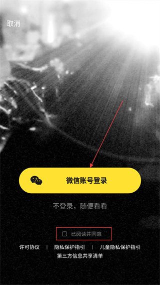 3、在登錄的頁面內(nèi),勾選后再點(diǎn)擊微信賬號登錄即可。