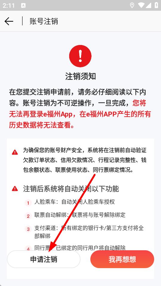 5、在賬號注銷頁面,仔細(xì)閱讀注銷須知后,點(diǎn)擊申請注銷按鈕,完成賬戶注銷操作。