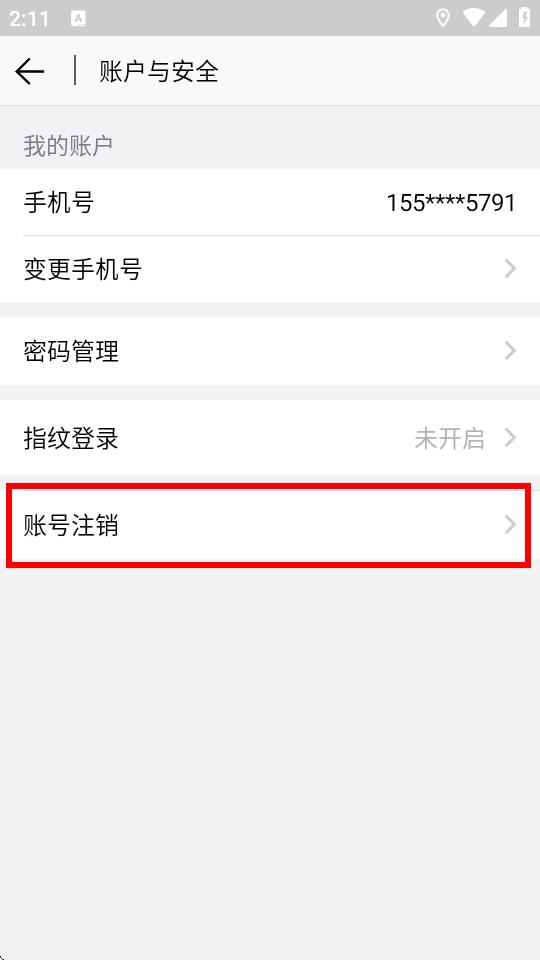 4、在賬戶與安全頁面里,點(diǎn)擊賬號注銷選項,進(jìn)入賬號注銷頁面。