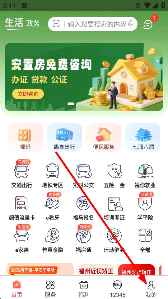 1、在e福州APP首頁,點(diǎn)擊底部我的選項進(jìn)入個人中心頁面。
