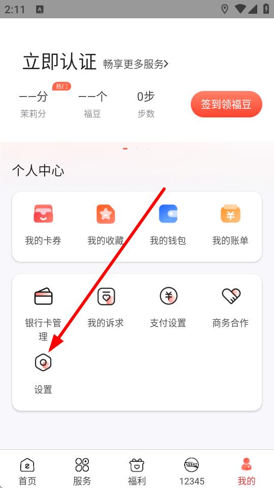 2、在個人中心頁面里,點(diǎn)擊設(shè)置選項,進(jìn)入設(shè)置界面。