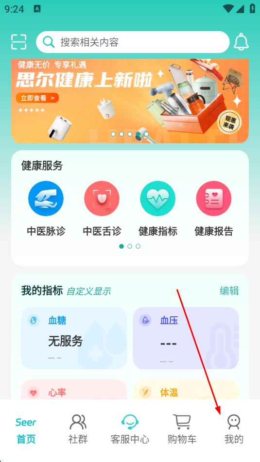 1、打開(kāi)思爾健康應(yīng)用,點(diǎn)擊底部導(dǎo)航欄中的我的選項(xiàng)。