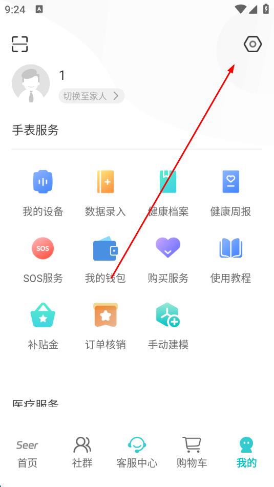 2、在我的頁(yè)面,點(diǎn)擊右上角的設(shè)置圖標(biāo)。