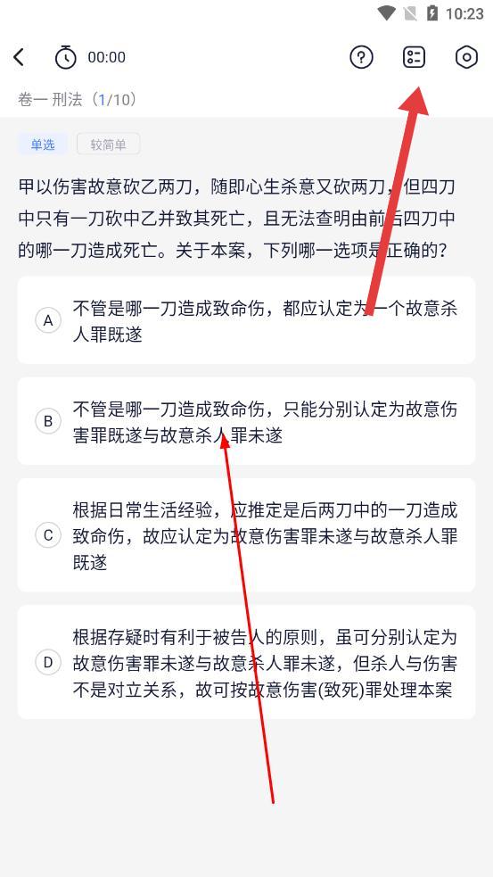 2、進(jìn)入題目頁(yè)面后,選好答案,點(diǎn)擊右上角的答題卡圖標(biāo)。