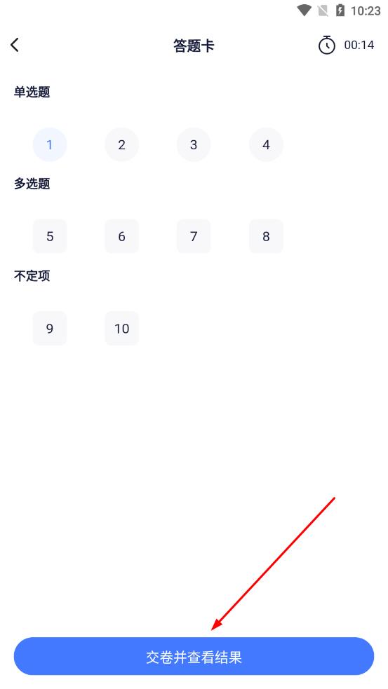 3、在答題卡界面,點(diǎn)擊交卷并查看結(jié)果按鈕。