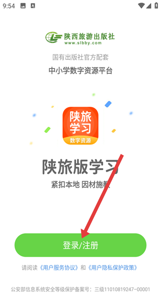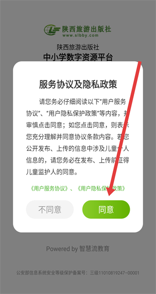 1、打開陜旅版學(xué)習(xí)APP,點擊同意按鈕,確認(rèn)服務(wù)協(xié)議及隱私政策,進(jìn)入登錄注冊界面。