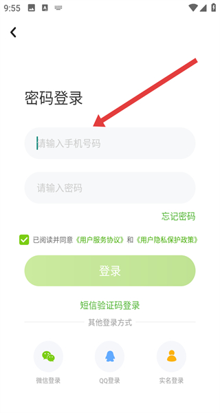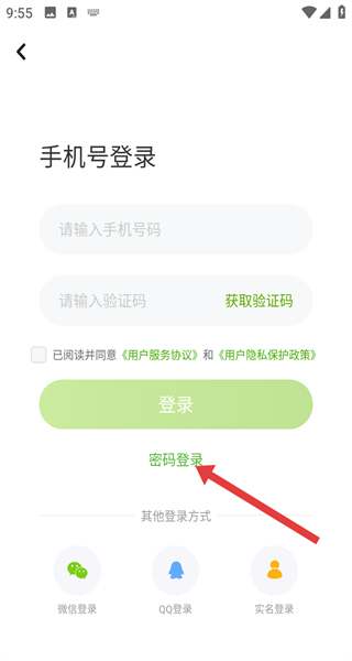 3、在手機(jī)號登錄界面,點擊密碼登錄選項,切換到密碼登錄模式。