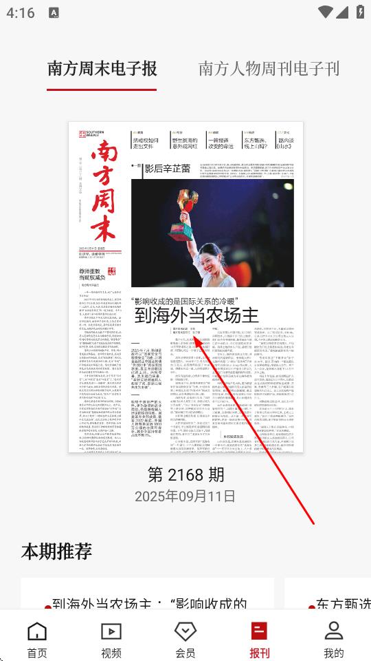 4、在報刊詳情頁面,即可查看該期南方周末的往期內容。