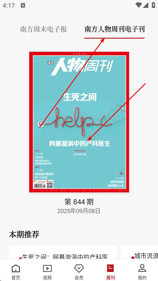 4、若想閱讀《南方人物周刊電子刊》,在報刊頁面點擊南方人物周刊電子刊選項。