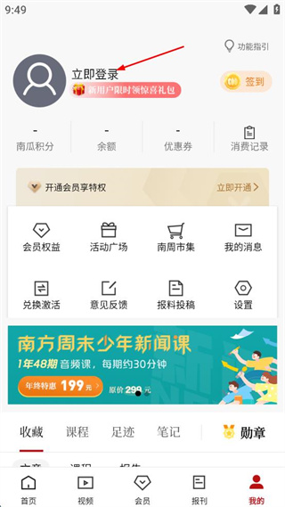 1、打開南方周末APP,點擊右下角“我的”,進入個人頁面。