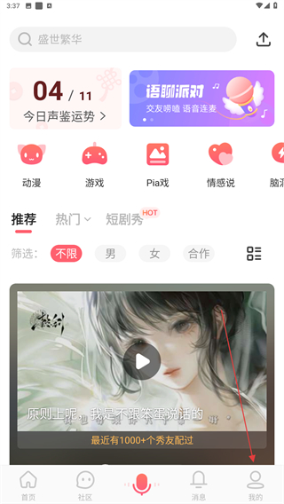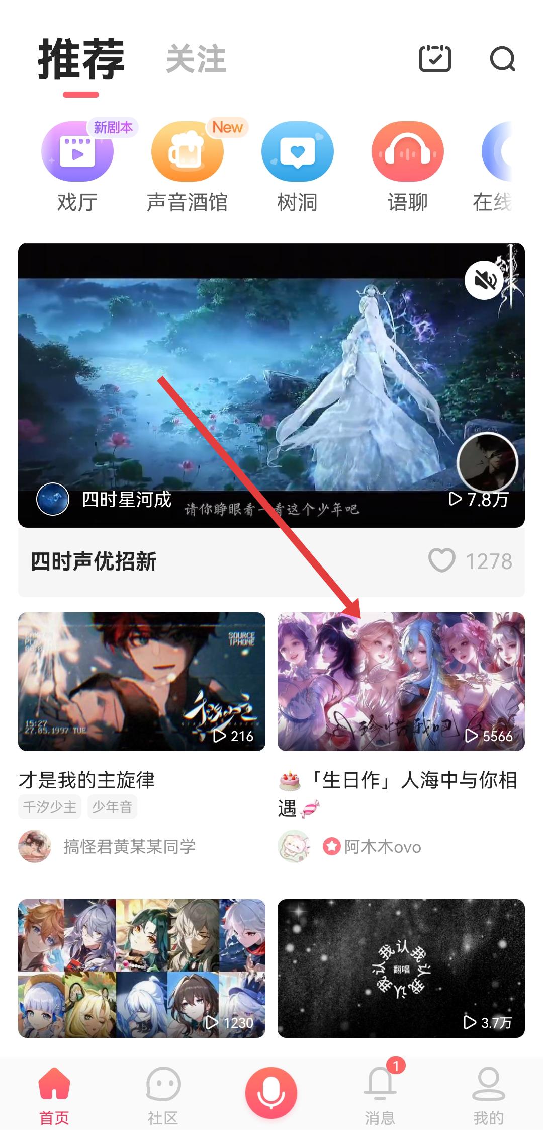 1、打開(kāi)配音秀APP,在首頁(yè)推薦中找到想要配音的作品,點(diǎn)擊進(jìn)入作品的詳情頁(yè)面。