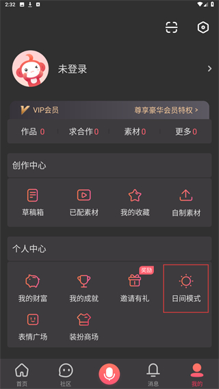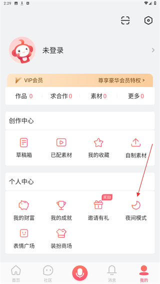 2、進(jìn)入我的頁(yè)面內(nèi),在個(gè)人中心下點(diǎn)擊夜間模式。