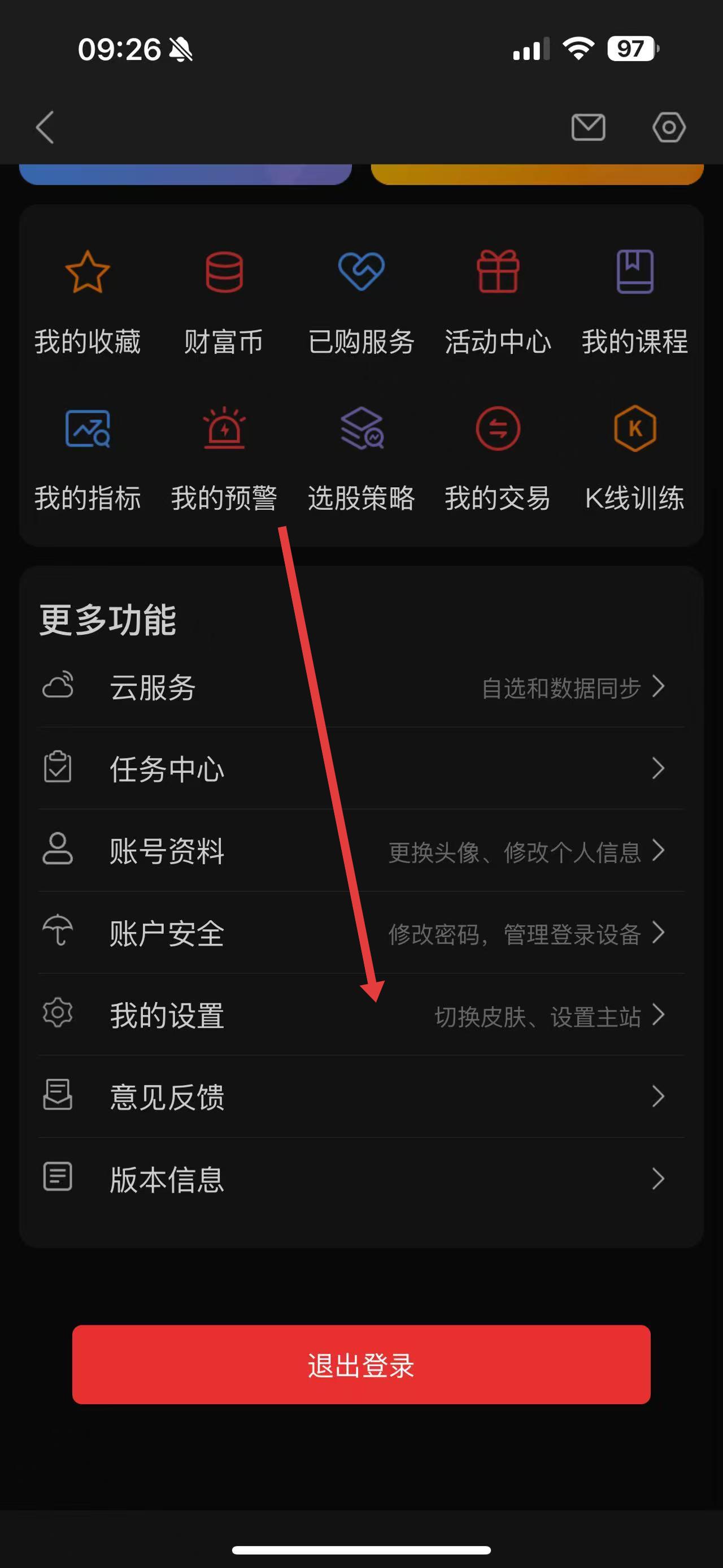 3、在個人頁面里,向下滑動找到我的設(shè)置選項,點擊進入設(shè)置界面。