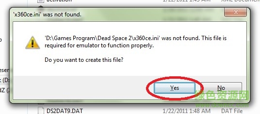 開(kāi)始會(huì)彈出題示x360ce.ini文件找不到,按yes到下一步。