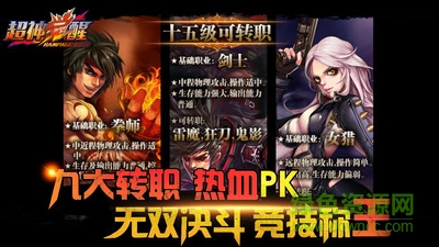 真3D、真熱血,2017全民戰(zhàn)斗手游《超神覺(jué)醒》,架構(gòu)出神秘的維林諾大陸,人類與魔族為爭(zhēng)奪“魔晶”的紛爭(zhēng)而陷入血戰(zhàn)。游戲設(shè)定了劍士、拳師、女獵三大基礎(chǔ)玩法職業(yè),以及九個(gè)轉(zhuǎn)職晉升職業(yè):雷魔、狂刀、鬼影、鐵拳、烈焰、凜風(fēng)、幽浮、時(shí)空、冰舞,豐富的技能組合與職業(yè)專屬的覺(jué)醒技,為玩家提供了多樣的戰(zhàn)術(shù)玩法!