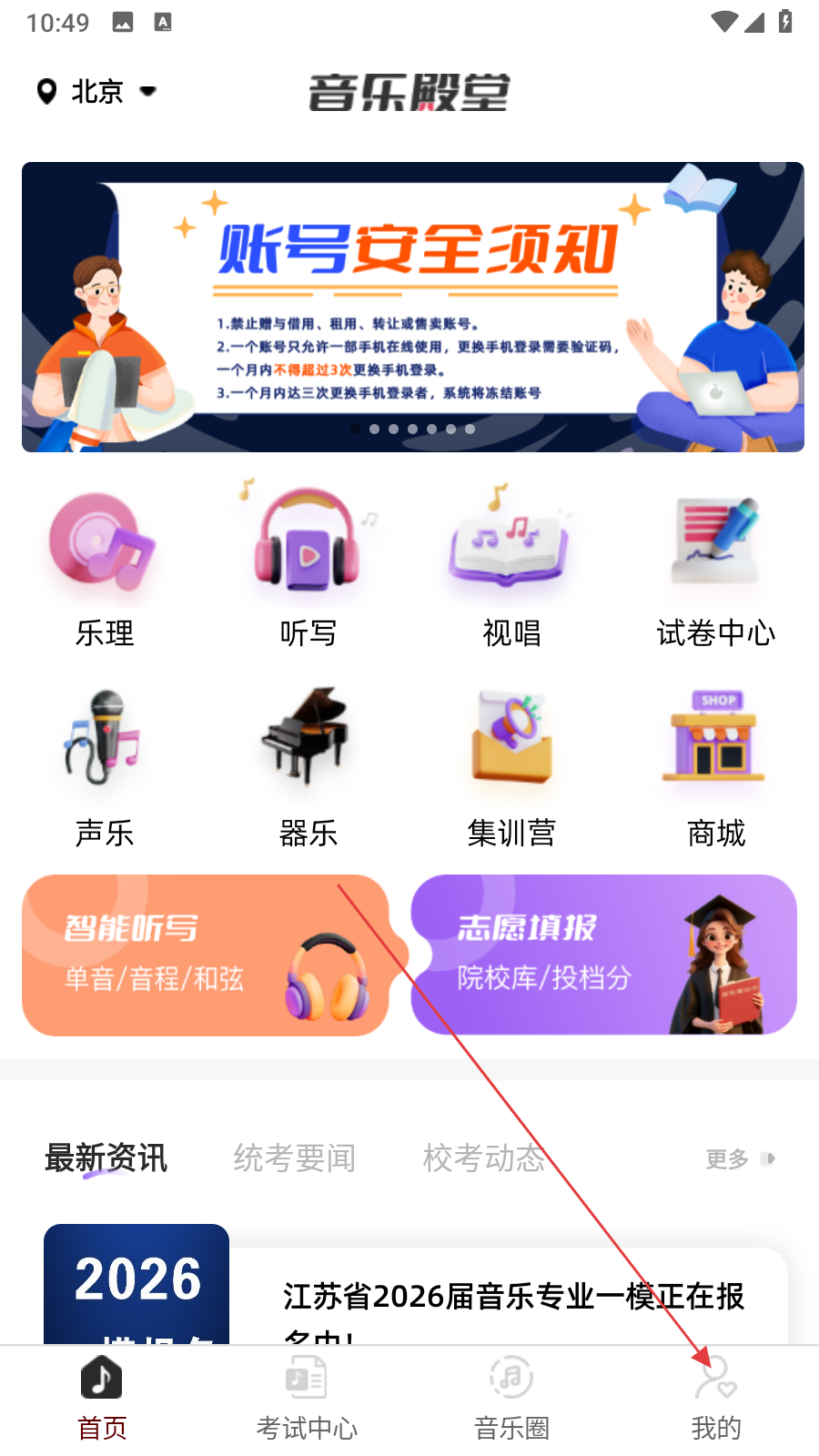 1、打開音樂殿堂APP,點(diǎn)擊底部導(dǎo)航欄我的,進(jìn)入個人頁面。