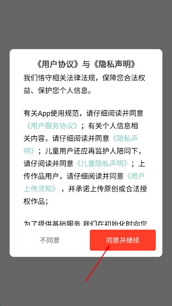 1、首次打開火螢App,彈出用戶協(xié)議與隱私聲明界面,閱讀相關內(nèi)容后點擊同意并繼續(xù),完成協(xié)議確認。