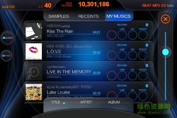 1、BEAT MP3最吸引人的地方在于,與普通的音樂(lè)節(jié)拍類游戲不同的是可以直接分析MP3格式的音樂(lè)來(lái)生成游戲內(nèi)容,換句話說(shuō),只要你的設(shè)備內(nèi)有MP3等音源,都可以在游戲中體驗(yàn)!不僅僅是節(jié)奏就連與歌詞相吻合的音符都可以自動(dòng)生成。