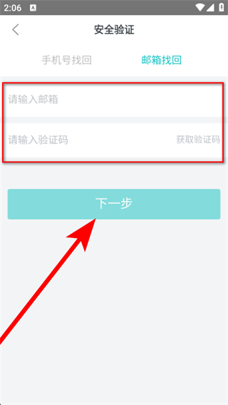 3、若選郵箱找回,輸入郵箱地址和驗證碼,點擊下一步,后續(xù)按提示完成密碼重置。