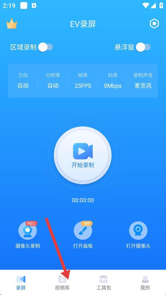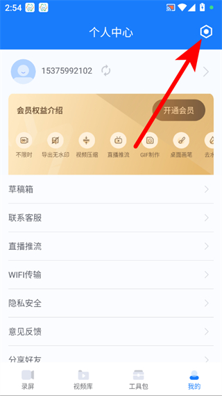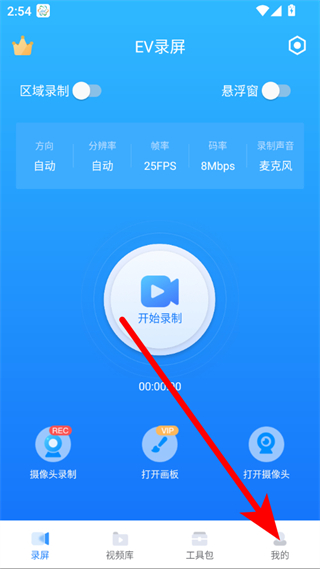 1、打開(kāi)EV錄屏APP,點(diǎn)擊右下角我的,進(jìn)入個(gè)人中心頁(yè)面。