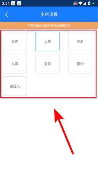 3、在設(shè)置頁(yè)面點(diǎn)擊變聲,進(jìn)入變聲設(shè)置頁(yè)面。