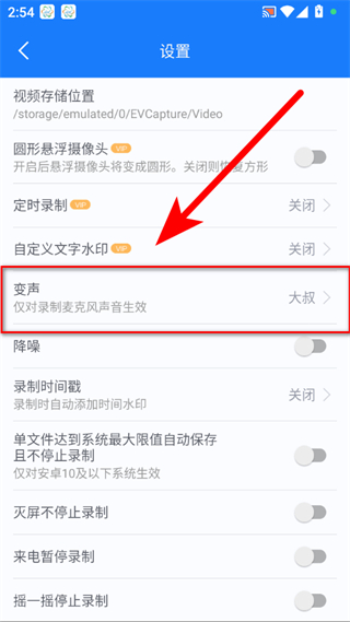 4、在變聲設(shè)置頁(yè)面選擇需要的聲音類(lèi)型,如蘿莉、女聲、男聲、怪物等,即可完成EV錄屏的變聲設(shè)置操作。
