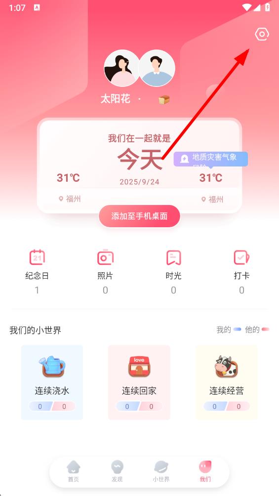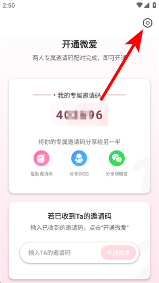 1、打開微愛APP,點(diǎn)擊右上角設(shè)置圖標(biāo),進(jìn)入設(shè)置頁面。